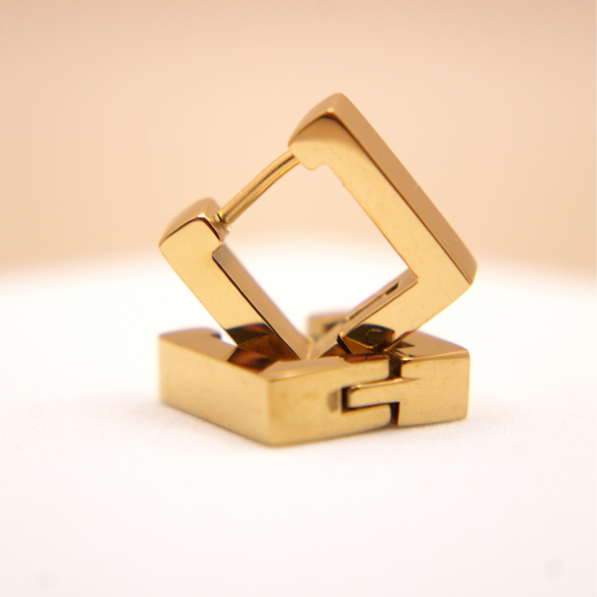 Clean lines, bold essence. These square-shaped gold stainless steel hoops embody minimalism with personality. Their geometric silhouette makes them a modern, versatile piece you can wear solo or stacked to add an elegant, standout touch.
