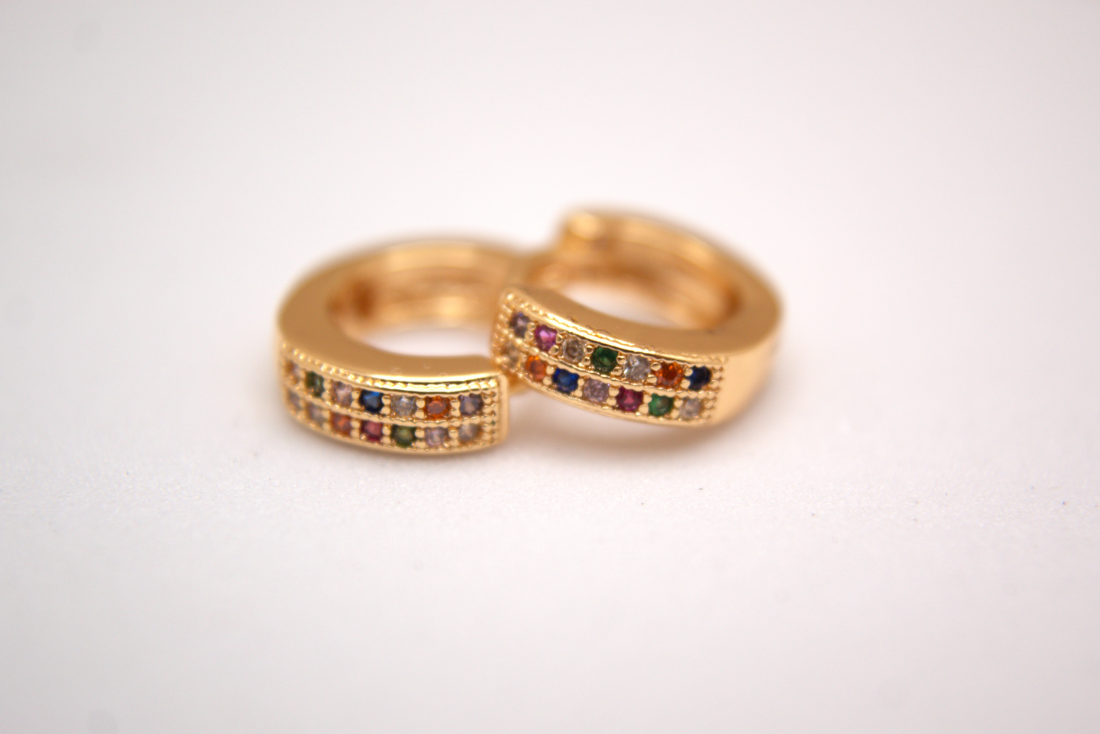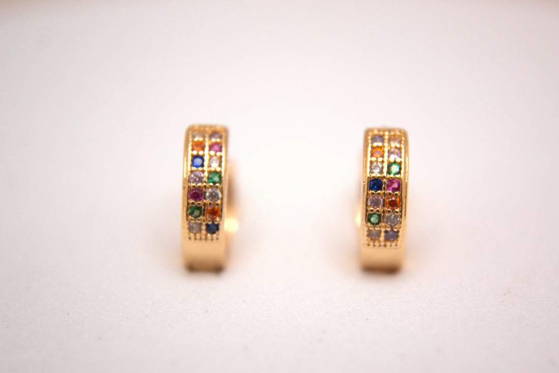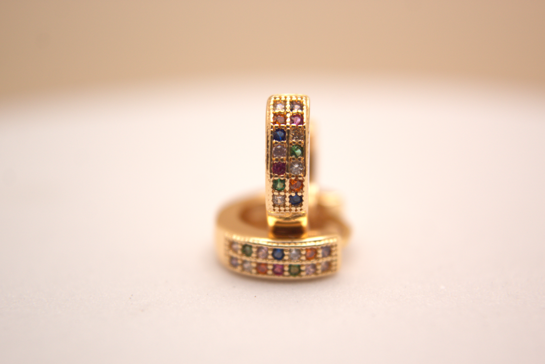 Their small, comfortable silhouette makes them perfect for daily wear, while the colorful cubic zirconia stones catch the light and turn heads wherever you go.