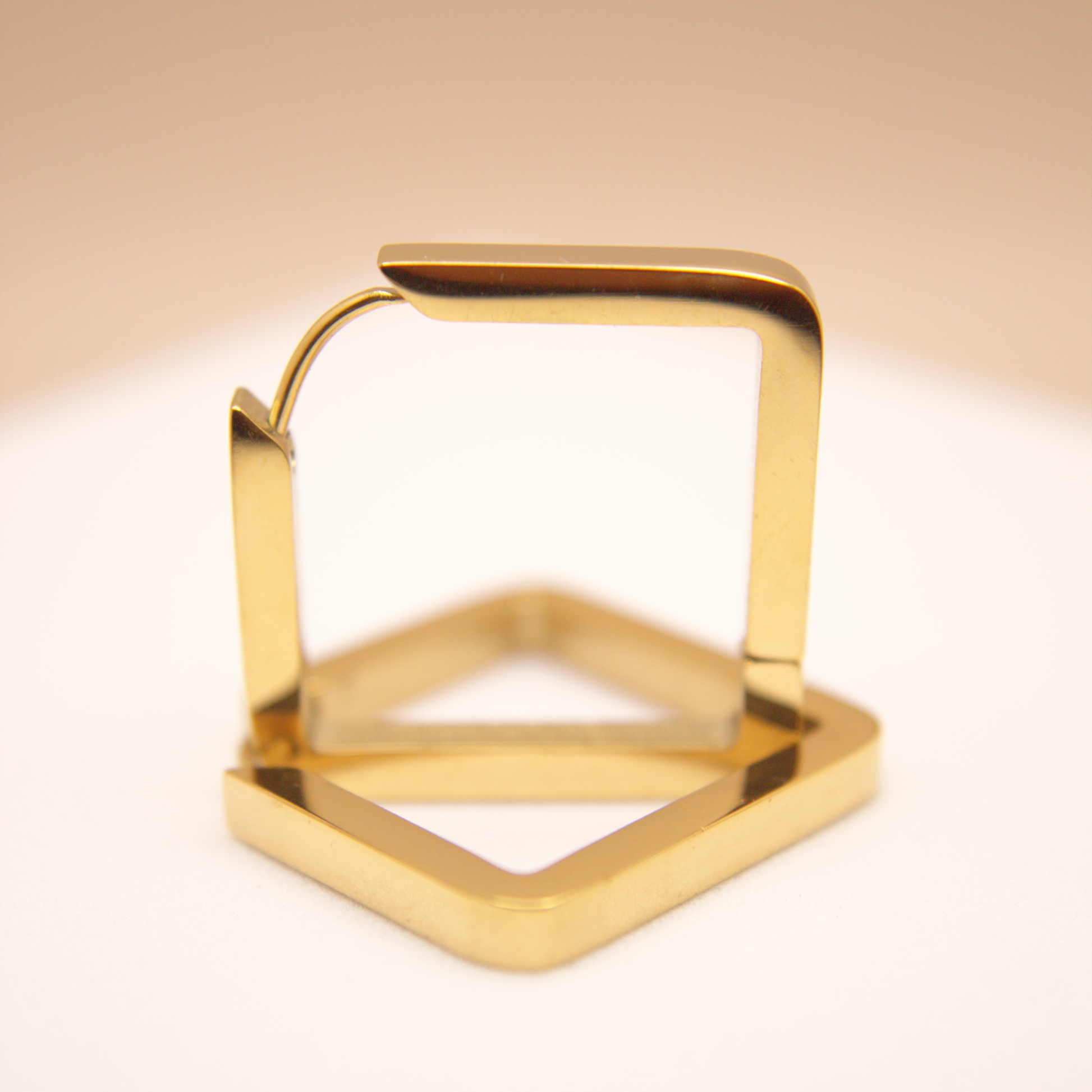 Where minimalist elegance meets geometric strength. These gold-tone stainless steel hoops stand out with their bold, polished square shape — a modern statement that feels both strong and feminine.