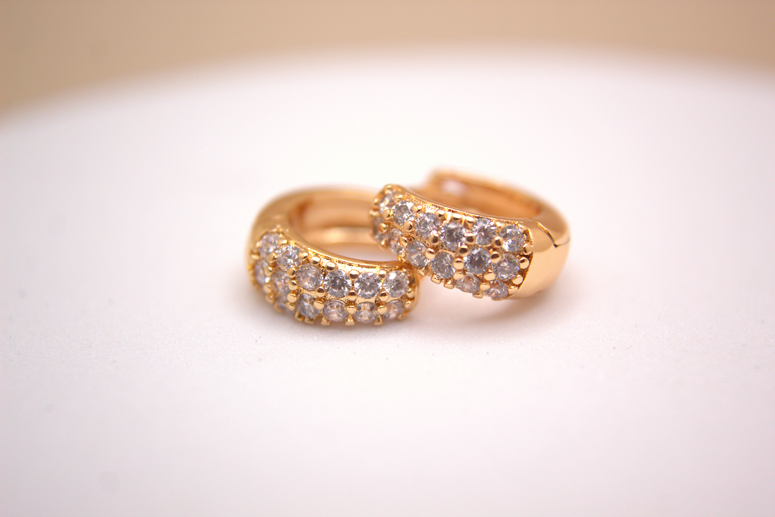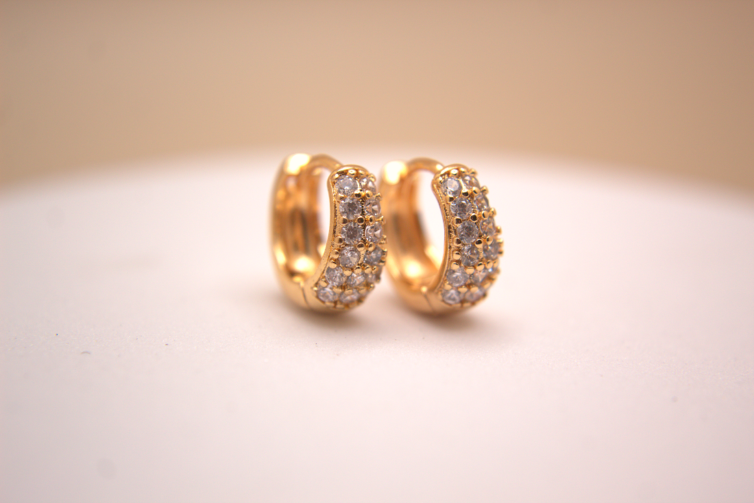Discover the magic in every sparkle with these golden hoops, adorned with white zirconia that catch the light like tiny mirrors of joy. Their delicate shape makes them the perfect companion—from morning coffee to evening plans—adding that effortless elegance that sets you apart.