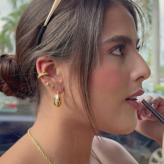Bold yet refined, the Solange hoops are crafted in gold-toned rhodium plating. Their domed shape captures the light beautifully, adding a confident glow to any look.